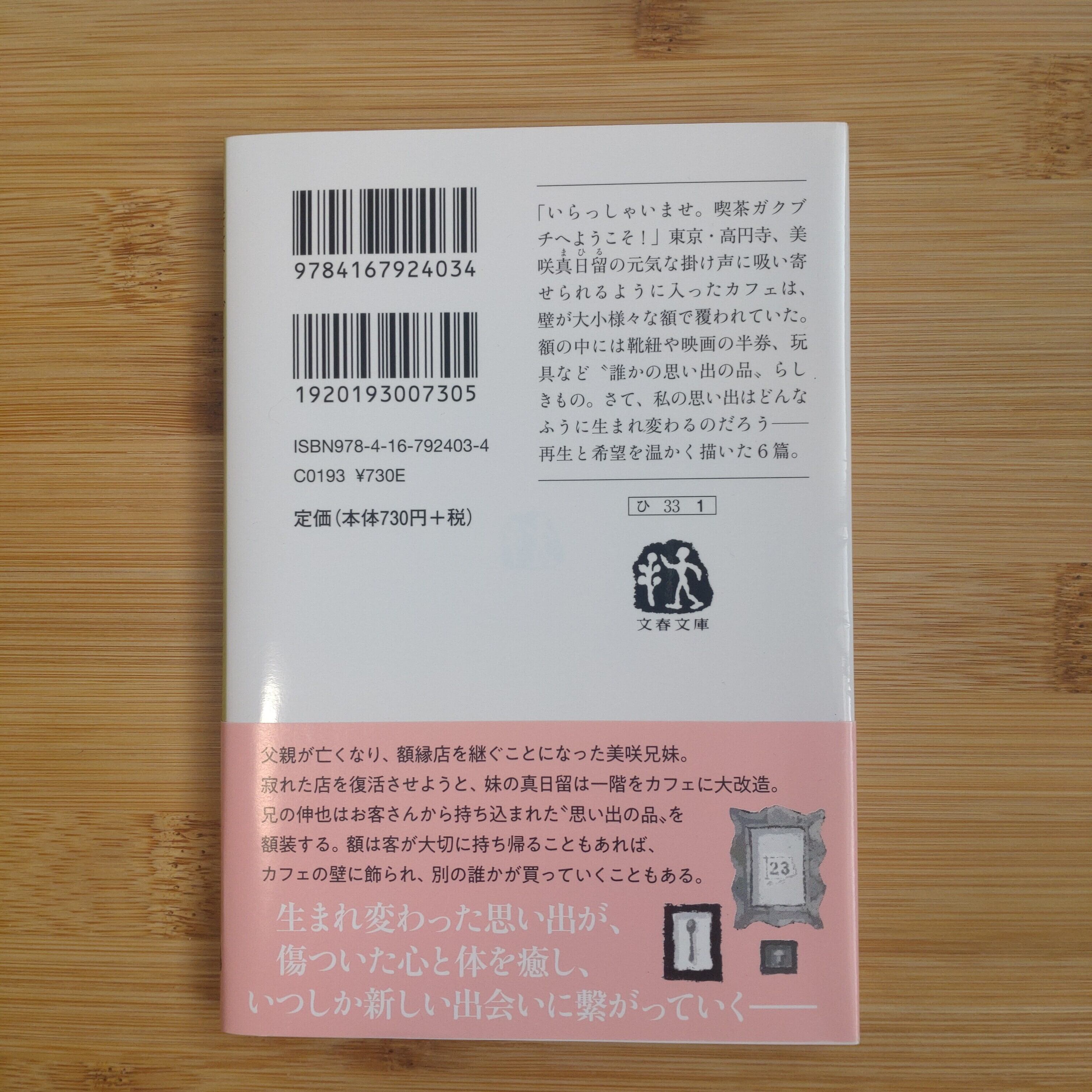 そこは、父親の跡を継いだ美咲兄妹が切り盛りする額縁店。寂れた店を復活させようと、妹の真日留は一階をカフェに大改造。兄の伸也はお客さんから持ち込まれた”思い出の品“を額装。額は客が大切に持ち帰ることもあれば、カフェの壁に飾られ、別の誰かが買っていくこともある。
