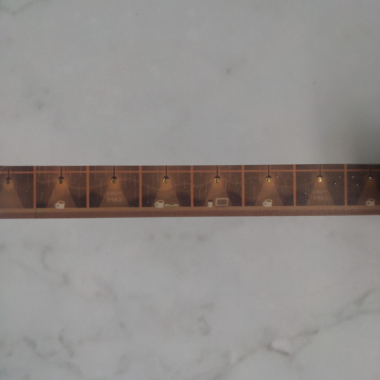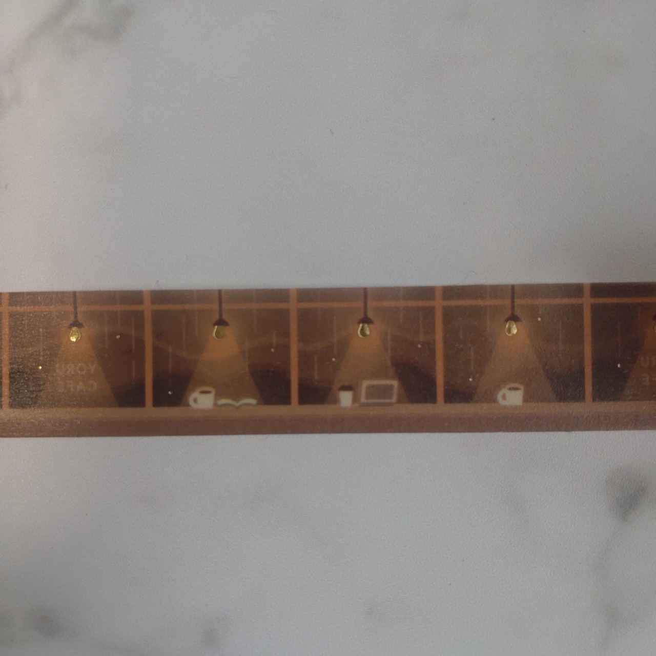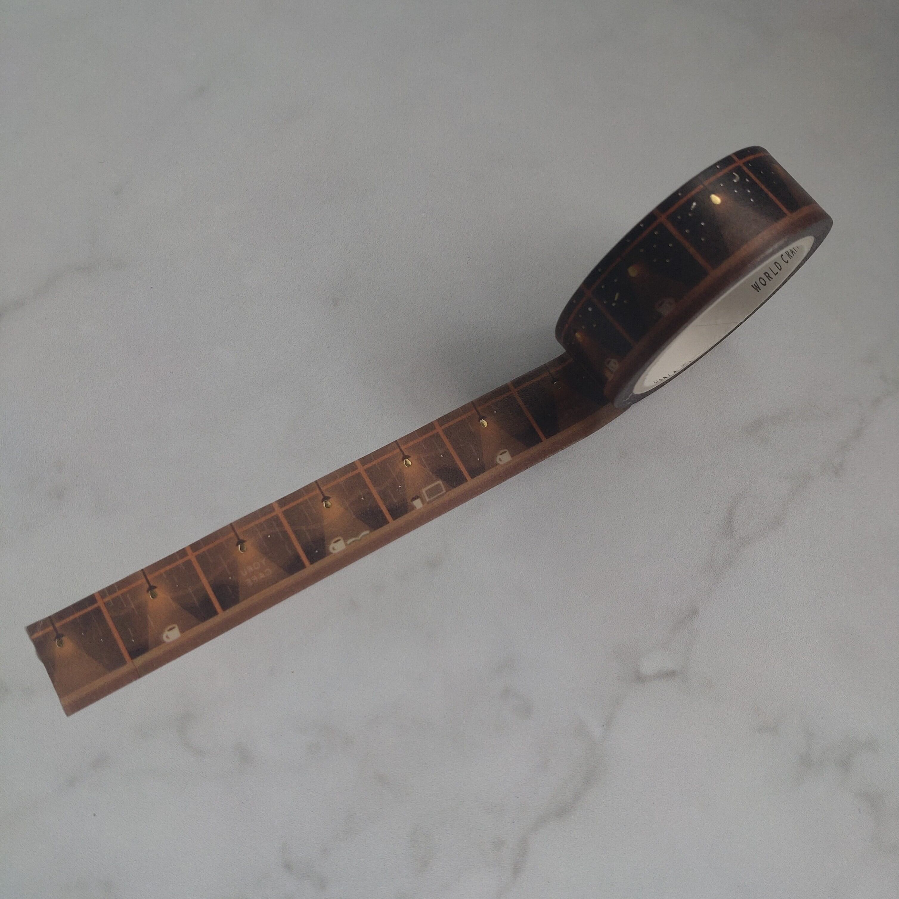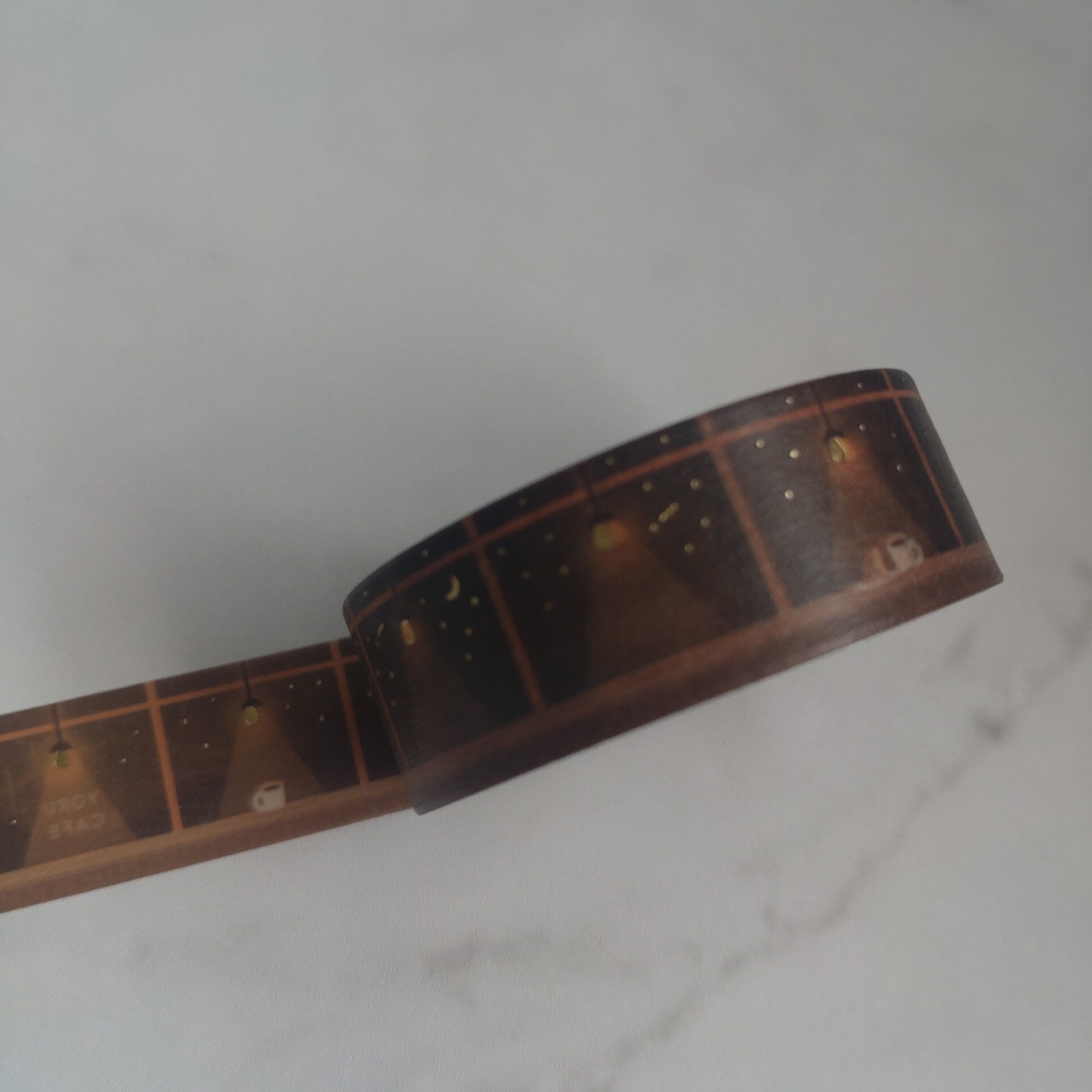 ゴールド箔がのった夜カフェモチーフのデザイン。