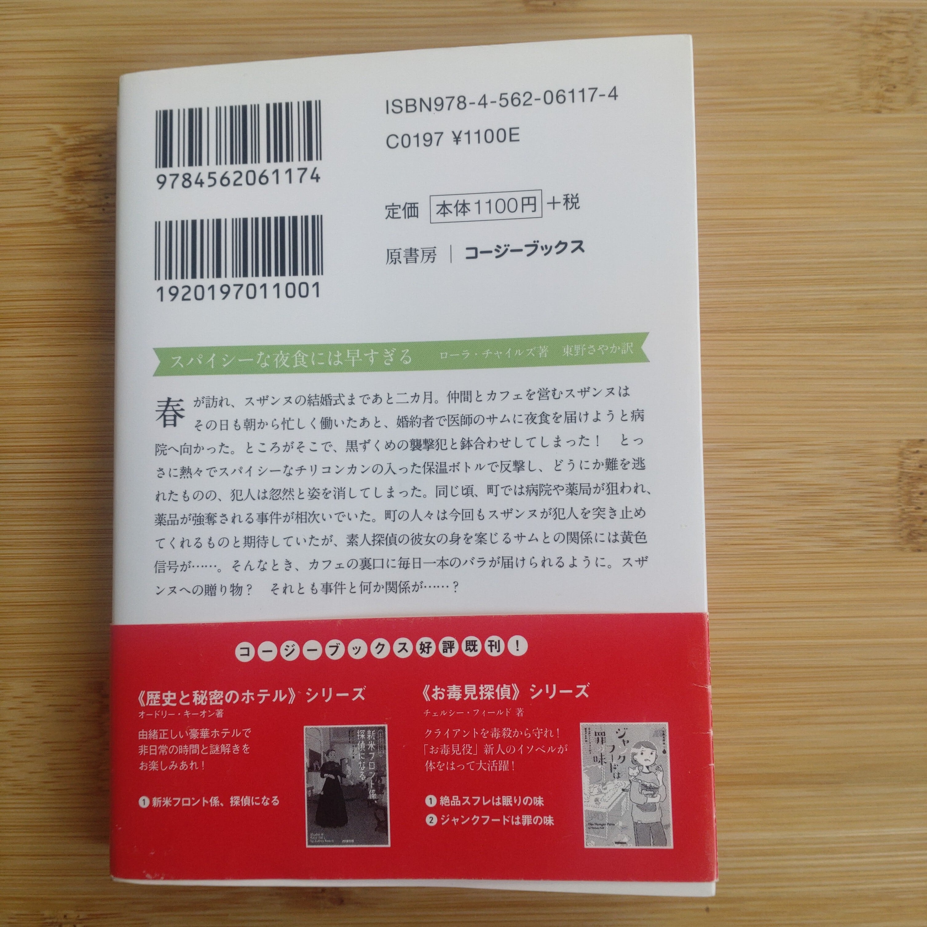 仲間とカフェを営むスザンヌは、その日も朝から忙しく働いたあと、婚約者で医師のサムに夜食を届けようと病院へ。ところがそこで、黒ずくめの襲撃犯と鉢合わせしてしまう。熱々でスパイシーなチリコンカンが入った保温ボトルで反撃してなんとか難を逃れたものの、町では病院や薬局が狙われ、薬品が強奪される被害が相次ぎ……?
